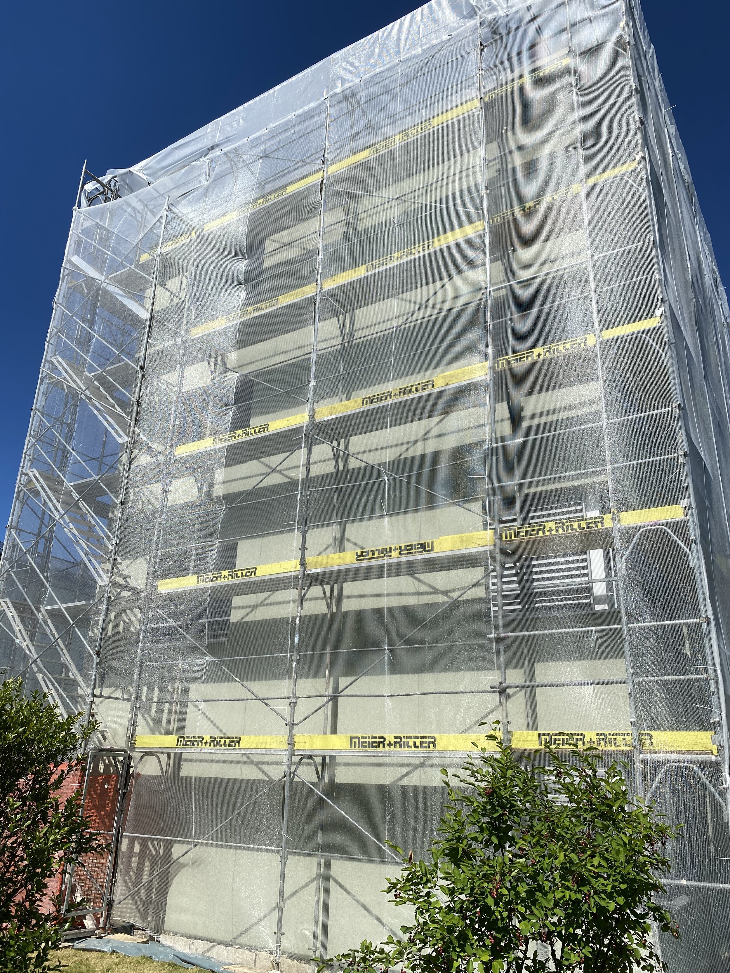 Bei insgesamt zehn Mietwohnungsblöcken musste die Aussendämmung an die neuesten Energieanforderungen angepasst werden. Die Fassadensanierung wurde im bewohnten Zustand innerhalb von fünf Monaten realisiert.